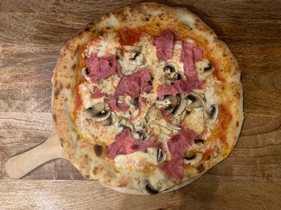 - Pizza Lombardi fior di latte, speck, gorgonzola, noix,
