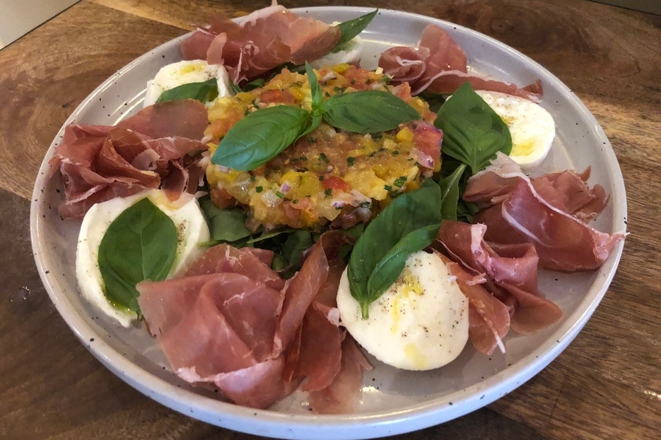 - Pizza Mortadelle spicy base blanche, mortadelle, tomate séchée marinée au vinaigre balsamique, topping spicy